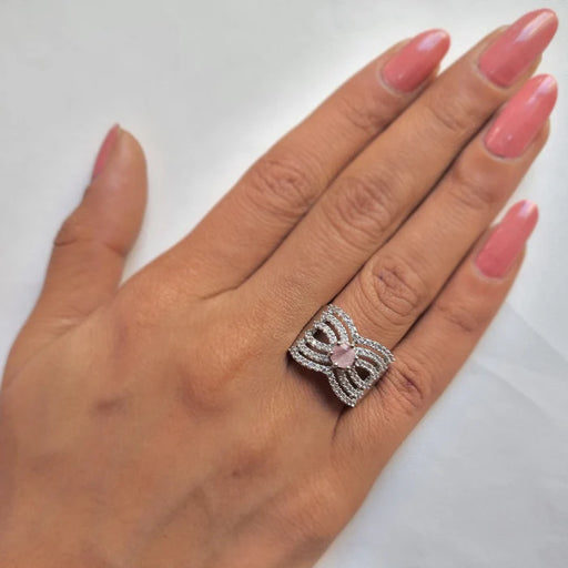 View full detailsBulk Radiant Rose Quartz and Ad Stone Silver Plated Ring: Elegant Sparkle for Every Occasion