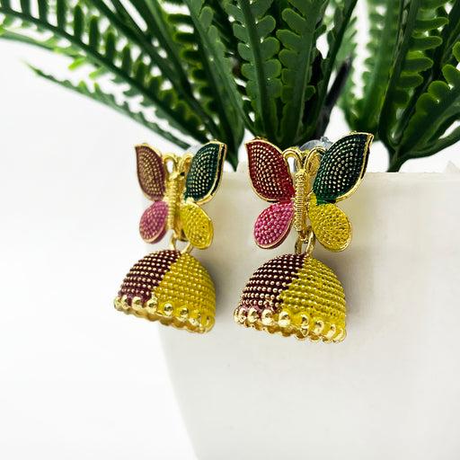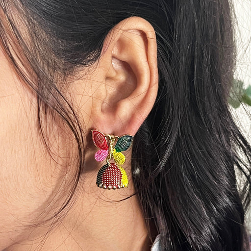 View full detailsColorful Butterfly Jhumka Earrings with Gold-Plated Finish