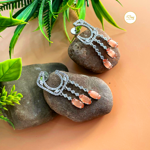 View full detailsShine with Diwam Jewels: Silver-Plated Rose Quartz & CZ Stone Dangle Earrings