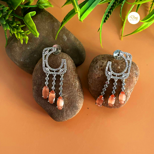 Diwam JewelsIntroduction: Get ready to add a touch of glamour to your collection with Diwam Jewels' stunning Silver-Plated Sunstone and CZ Stone Dangle Earring...