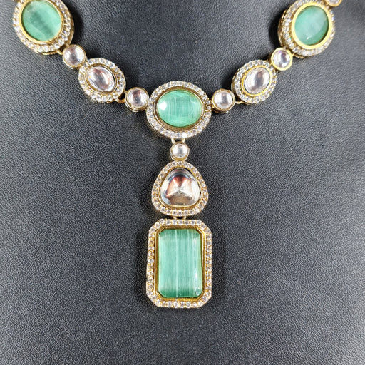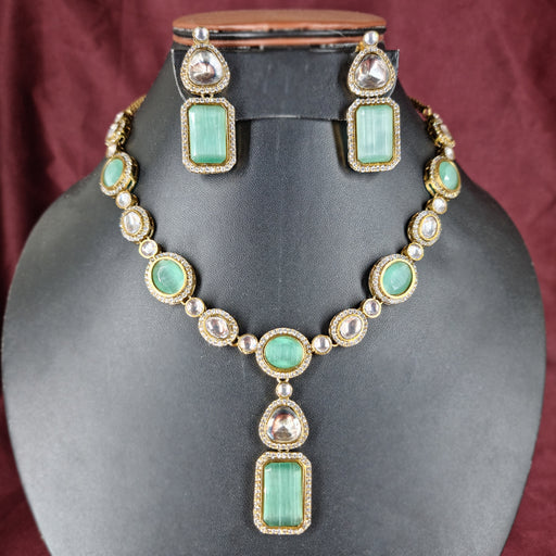 View full detailsBeautiful Aquamarine & AD Stones Studded Silver Plated Necklace and Earring Set