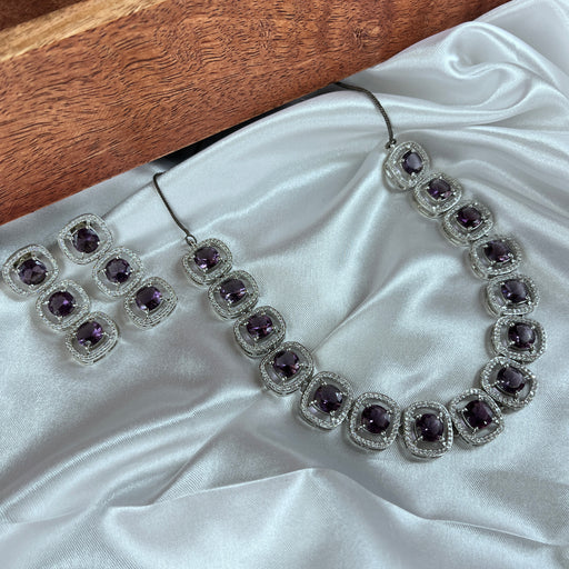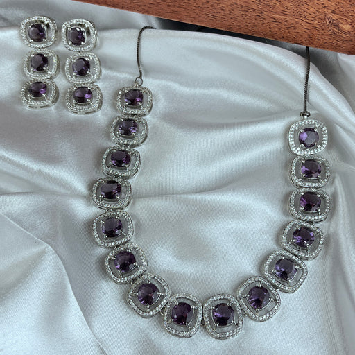 View full detailsAmethyst & CZ Stones Silver Plated Necklace and Earrings Set