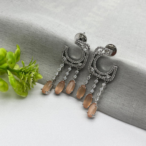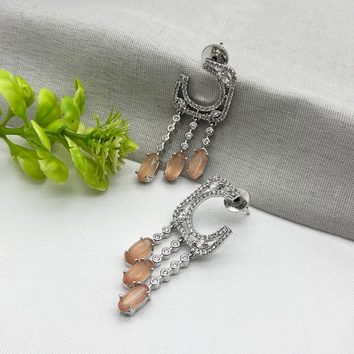 View full detailsSilver-Plated Drop Earrings with Sunstone and CZ Stones – Elegant Brass Jewelry
