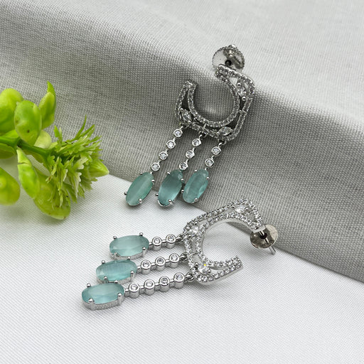 View full detailsSilver-Plated Drop Earrings with Aquamarine and CZ Stones – Elegant Brass Jewelry