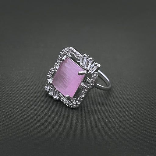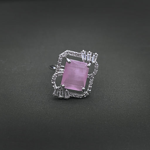 View full detailsSilver-Plated Adjustable Brass Ring with Rose Quartz & CZ Stones
