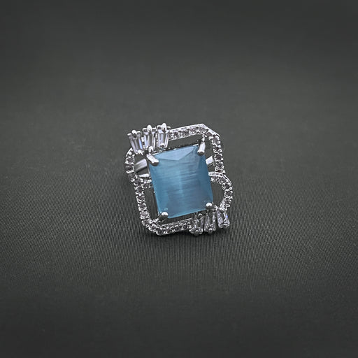 View full detailsSilver Plated Ring with Aqua Marine and CZ Stones: Ocean-inspired Elegance