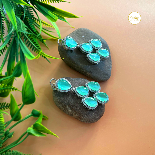 Diwam Jewels Silver Aqua Chalcedony & CZ Drop And Dangle Earrings