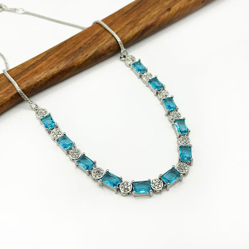 Diwam JewelsIndulge in regal elegance with our stunning Blue Sapphire and CZ Stones Silver Plated Necklace Set from Diwam Jewels. This exquisite se...
