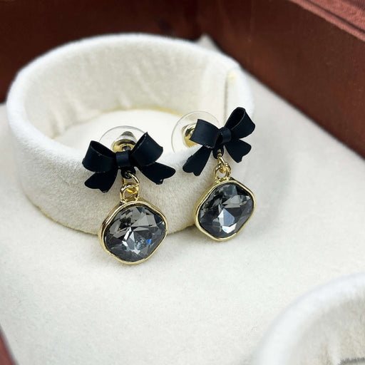 Diwam JewelsAdd a touch of chic elegance to your outfit with our Elegant Black Bow & Crystal Drop Earrings from Diwam Jewels. Featuring a dainty black bow ...