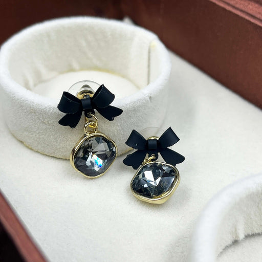 View full detailsElegant Black Bow & Crystal Drop Earrings – Gold Trimmed Statement Studs