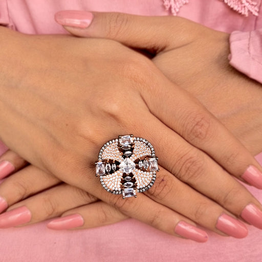 View full detailsSilver Plated Brass Ring with Zircon Stone and Ad Stones: Ethereal Beauty