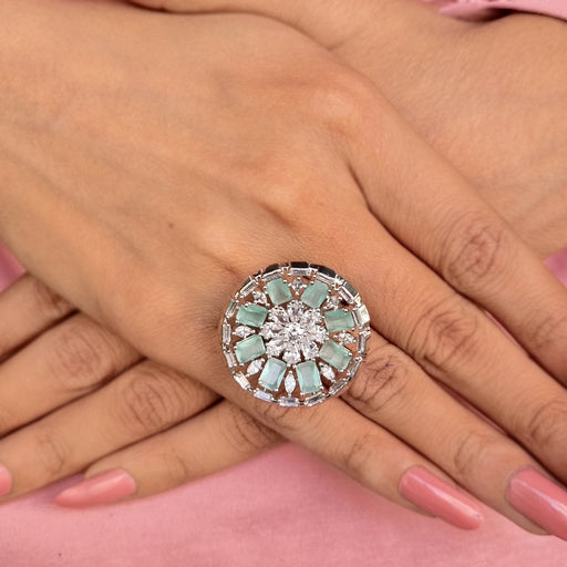 View full detailsAqua Marine & Ad Stones Silver-Plated Ring: Oceanic Elegance