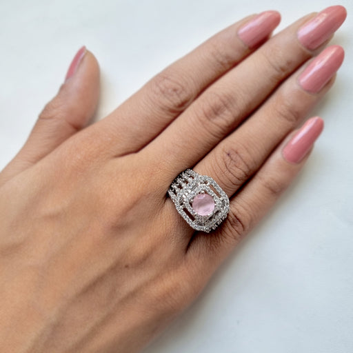 View full detailsEnchanting Rose Quartz Stone and Ad Stone Silver-Plated Ring