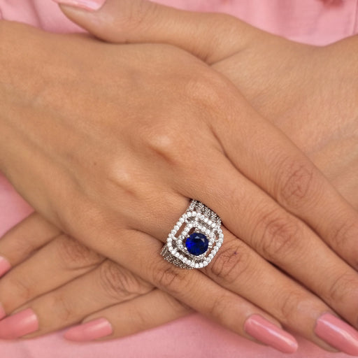 View full detailsSapphire Stone and CZ Silver-Plated Ring: Timeless Elegance