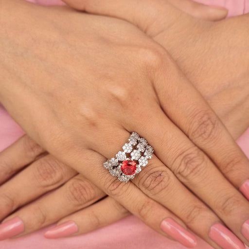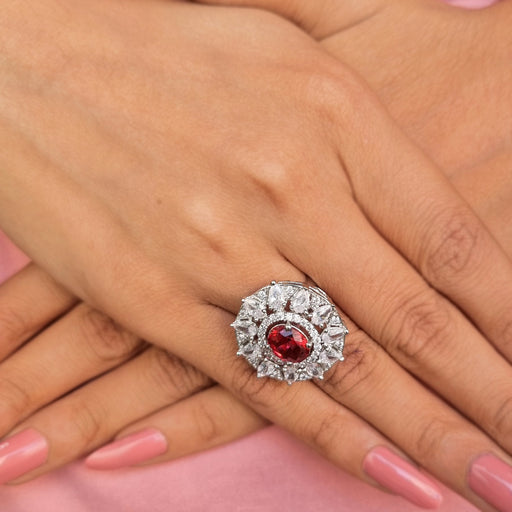 Captivating Ruby & AD Stones Studded Silver-Plated Ring