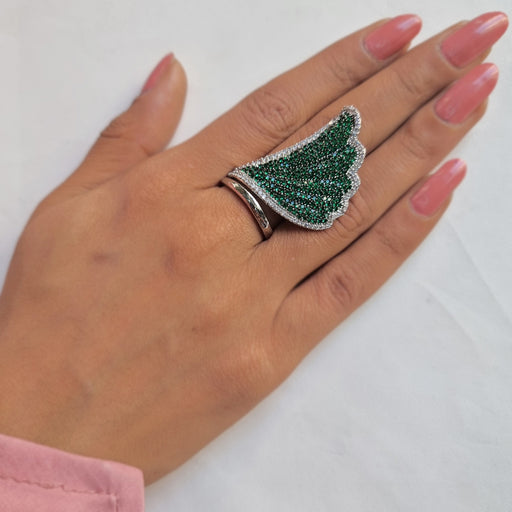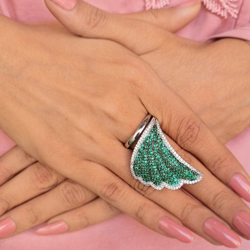 Diwam JewelsExperience the beauty and elegance of our Green CZ Stones Silver-Plated Ring from Riaad Jewels. This stunning ring features green cubic zirconi...