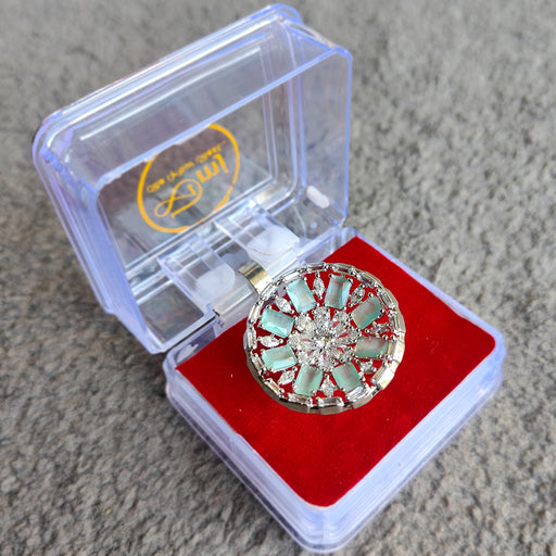 View full detailsElegant Ocean Color Aqua Marine & Ad Stones Silver-Plated Ring