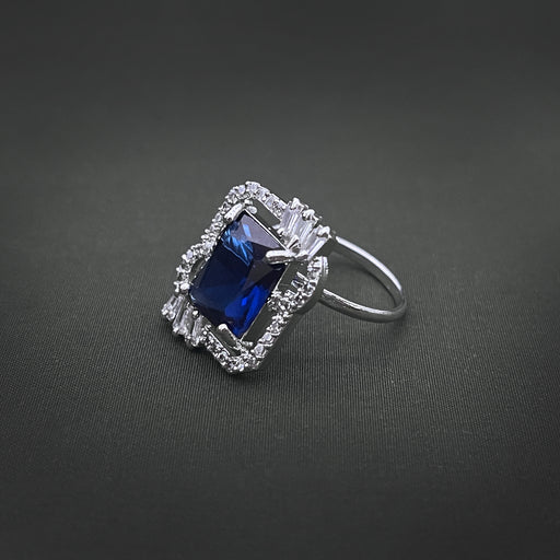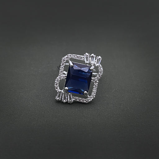 View full detailsSilver Plated Adjustable Ring with Sapphire and CZ Stones - Diwam Jewels