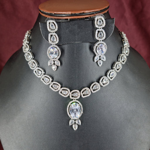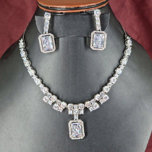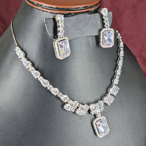 Diwam JewelsIntroducing the Zircon Stones Silver Plated Necklace and Earrings Set: a dazzling ensemble crafted with precision. Spar...