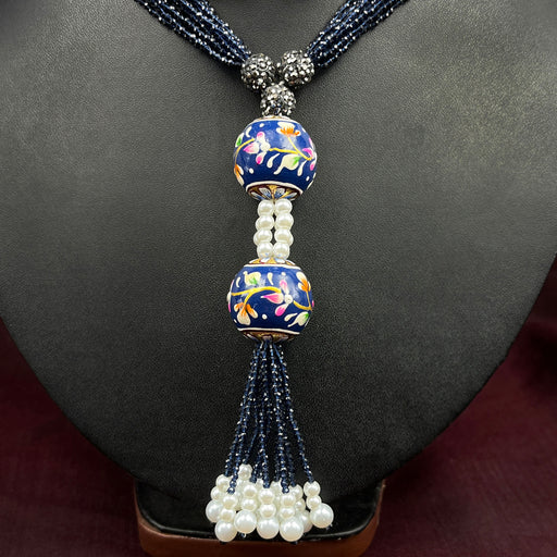 Diwam JewelsIntroducing our Blue Beads and Pearl Garland Necklace and Earrings Set. This elegant set features a multi-strand nec...
