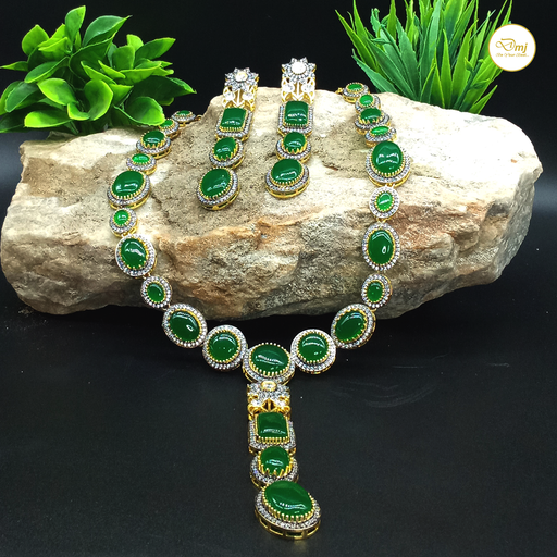 Diwam Jewels Emerald Stone Silver Plated Jewelry Set